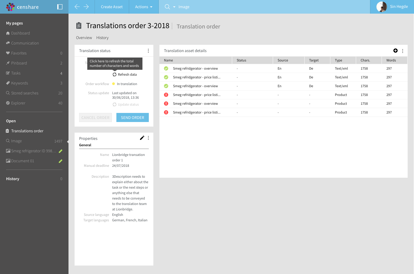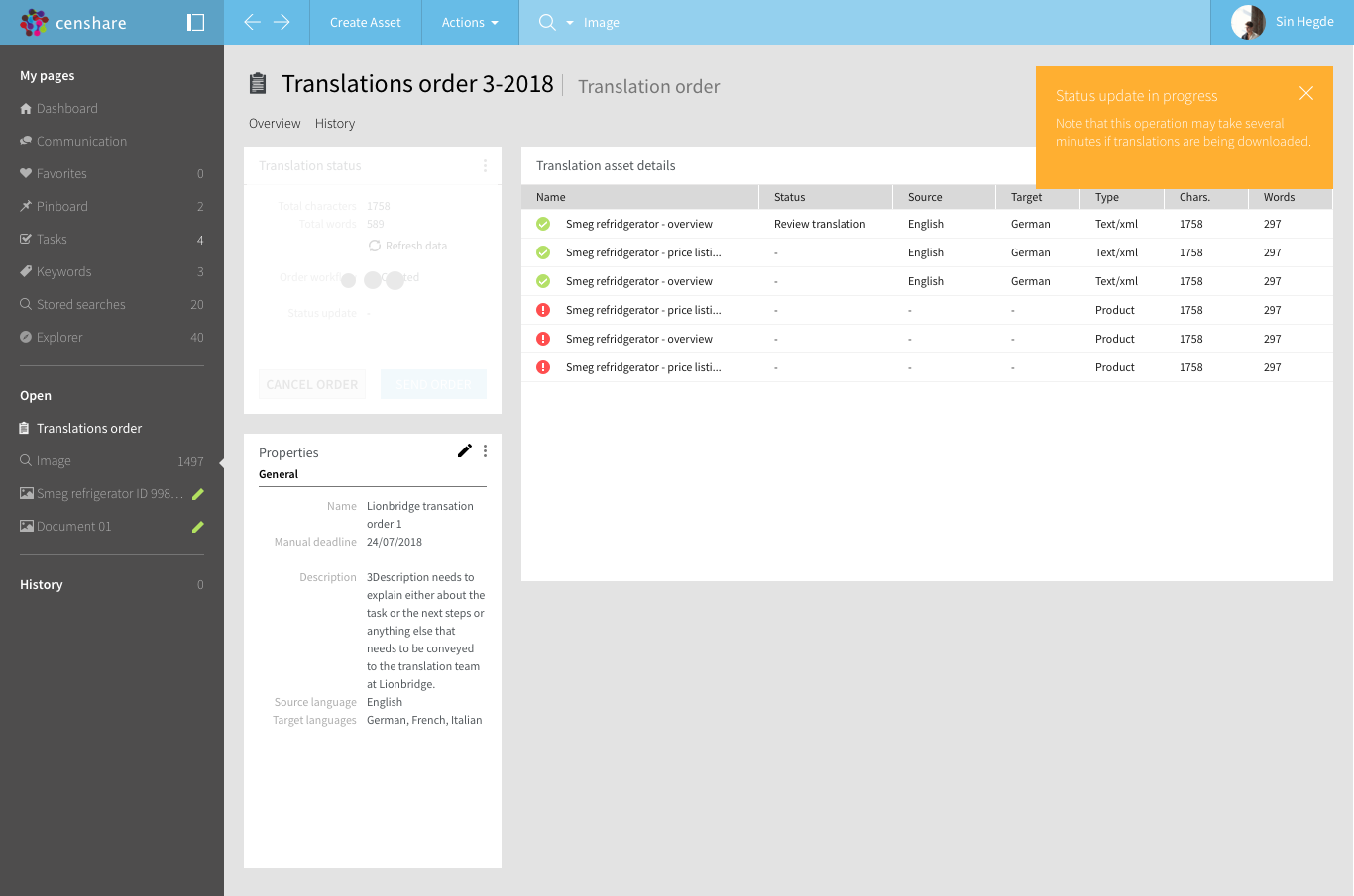 The translation order is a very important feature but the translation is performed by Lion Bridge software and their system have some limitations to provide data feedback. But as the business model of translation order is based on charging by number of characters a good feedback is essential.