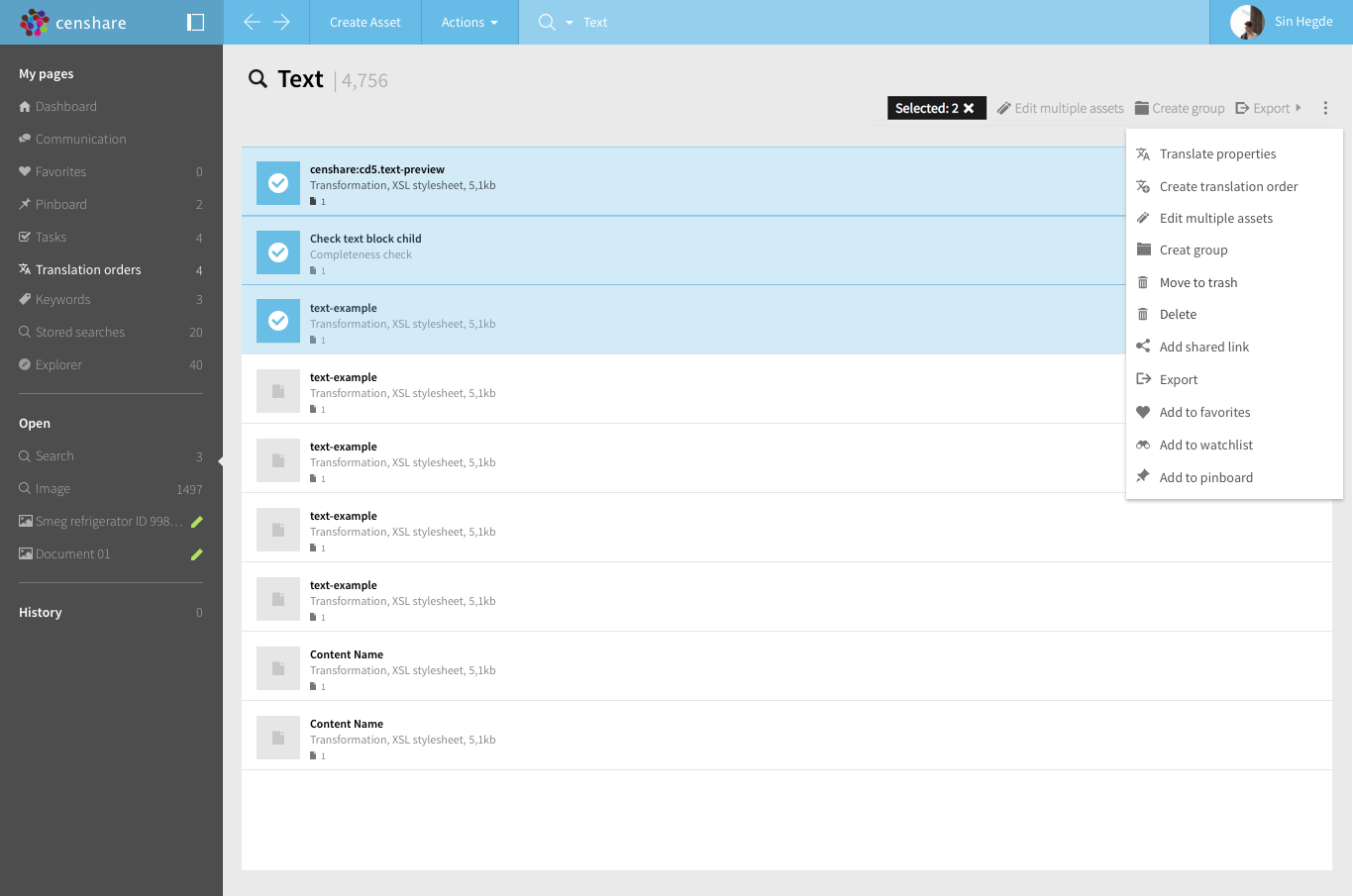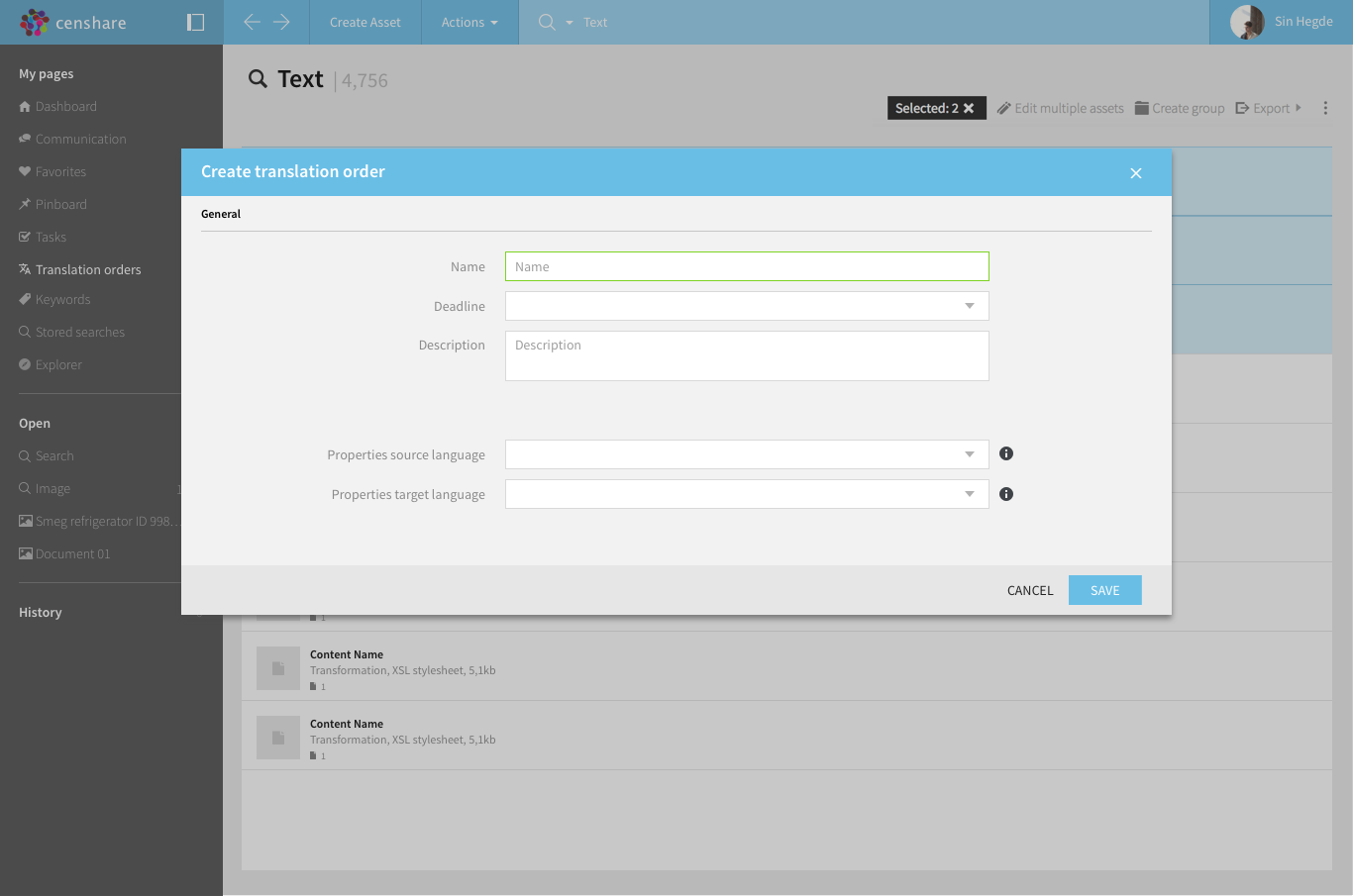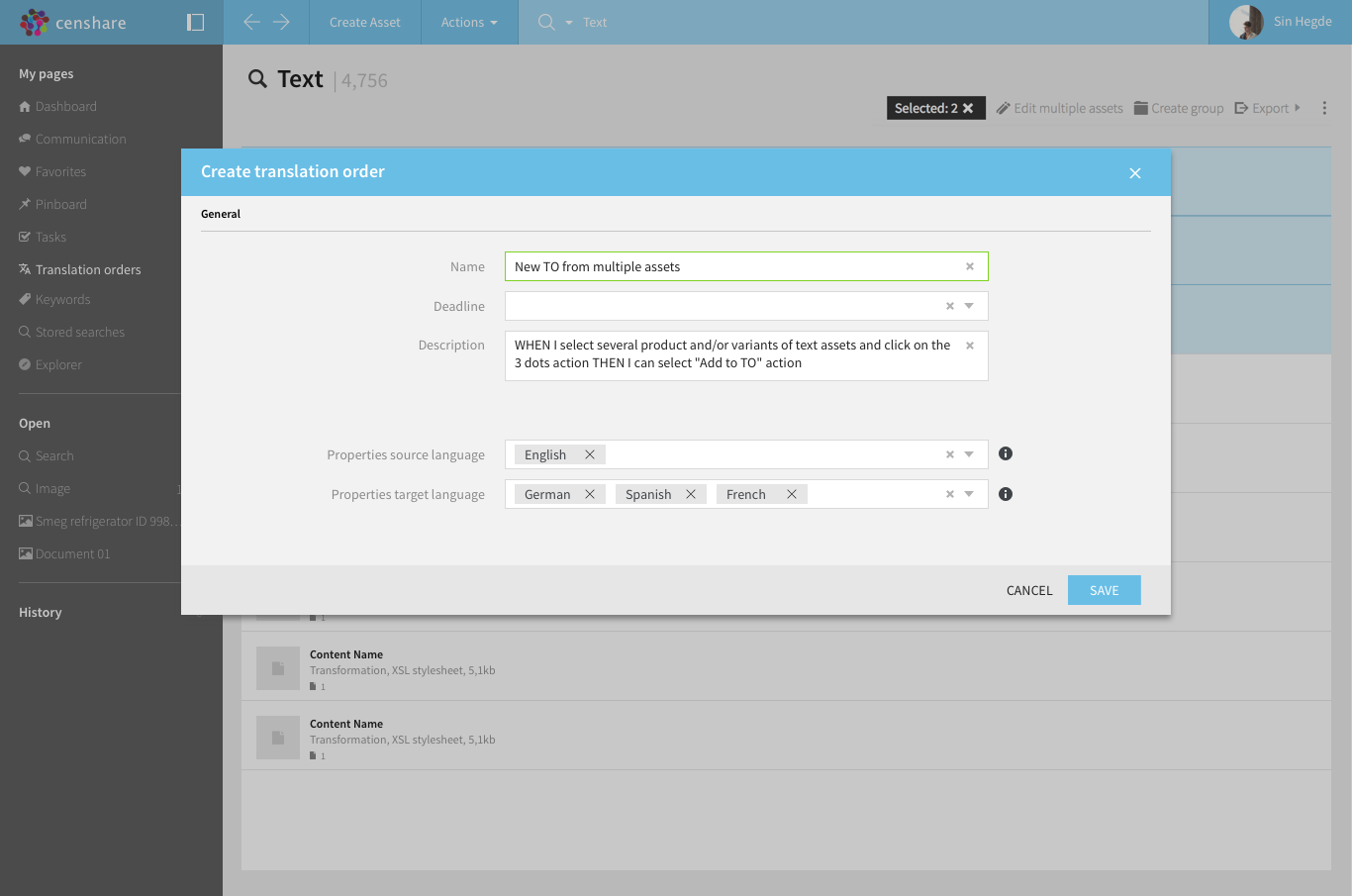 Create translation order with different text assets, with technical limitations from back end handling files and providing instant feedback on actions.